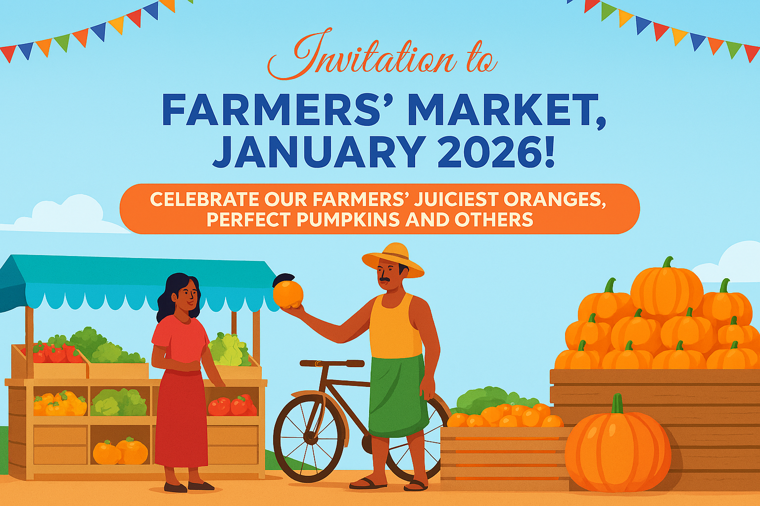 • Fresh Produce: Juicy oranges, pumpkins, and other seasonal farm harvests.